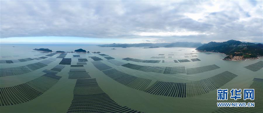 这是11月4日无人机拍摄的霞浦县长春镇的紫菜种植区(拼接照片)。近日,福建省霞浦县沿海6万亩紫菜迎来收获季节,渔民们出海收获紫菜,海上田园一派繁忙丰收景象。新华社记者姜克红摄