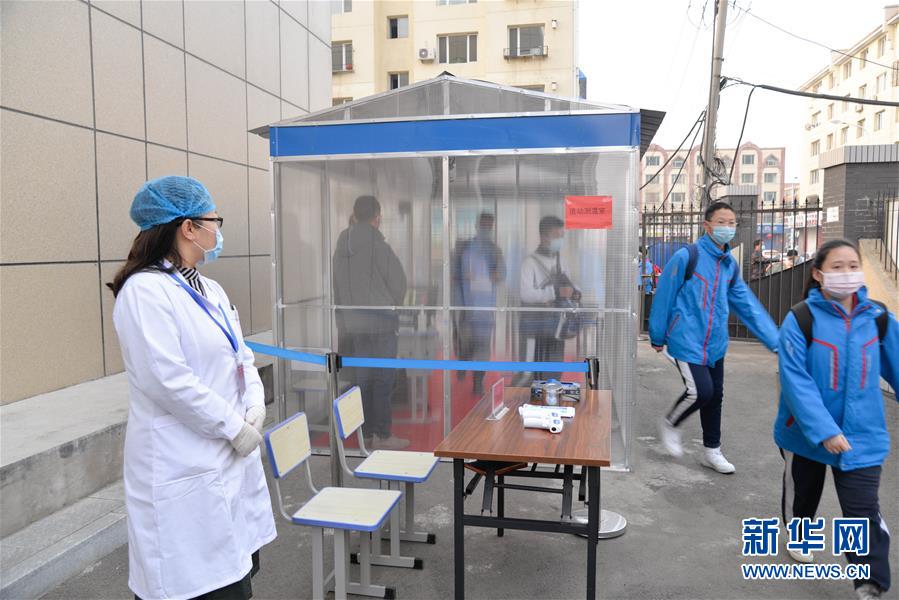 3月30日,呼和浩特市第六中学学生有序进入校园。当日,内蒙古自治区全区高三和初三年级开学复课。新华社记者王春燕摄