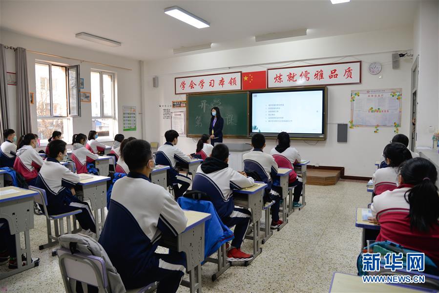 3月30日,呼和浩特市第六中学师生在教室内上课。当日,内蒙古自治区全区高三和初三年级开学复课。新华社记者王春燕摄