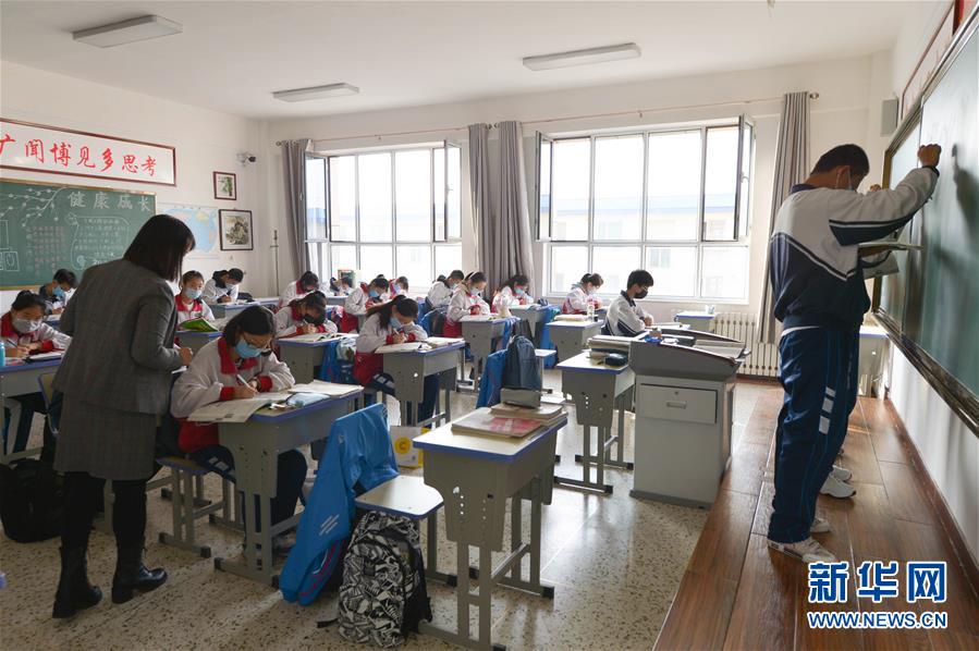 3月30日,呼和浩特市第六中学师生在教室内上课。当日,内蒙古自治区全区高三和初三年级开学复课。新华社记者徐钦摄