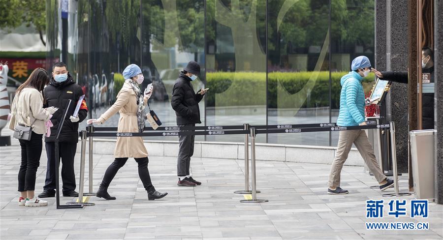 3月30日,顾客排队进入武商国际广场。当日,武汉市多家商场开门迎客。新华社记者费茂华摄