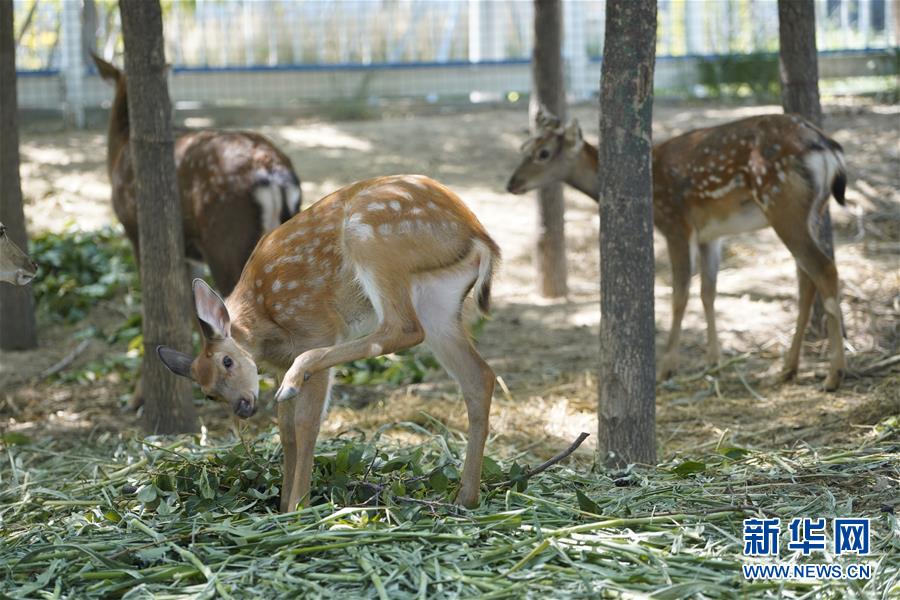 梅花鹿在雄安市民服务中心内休憩(8月30日摄)。新华社记者邢广利摄