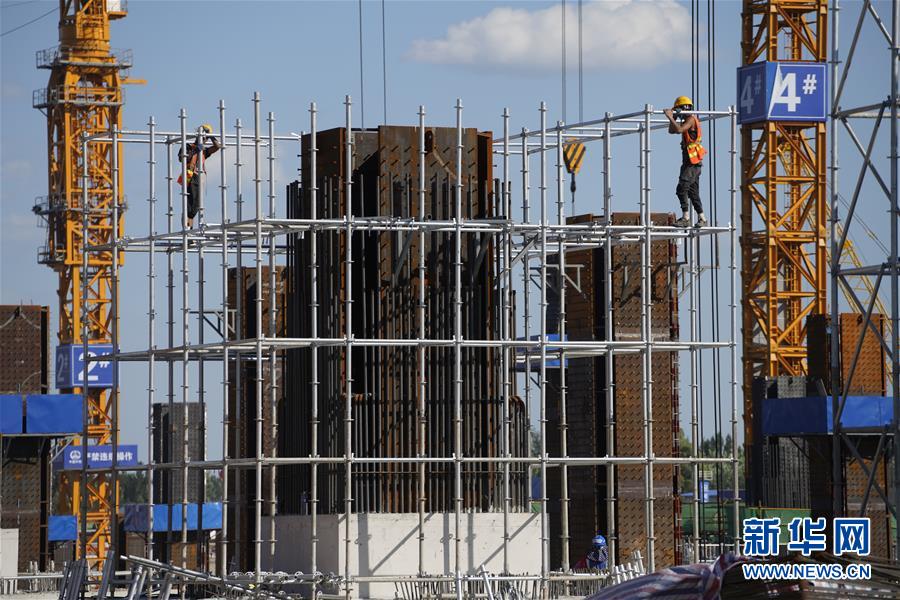 工人在京雄城际铁路雄安站施工(8月29日摄)。新华社记者邢广利摄