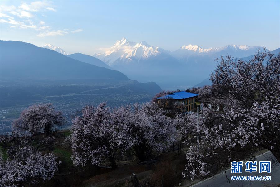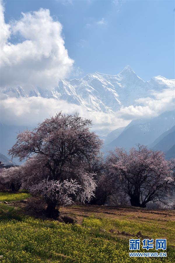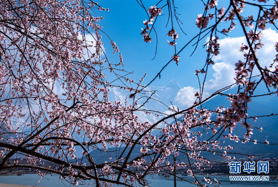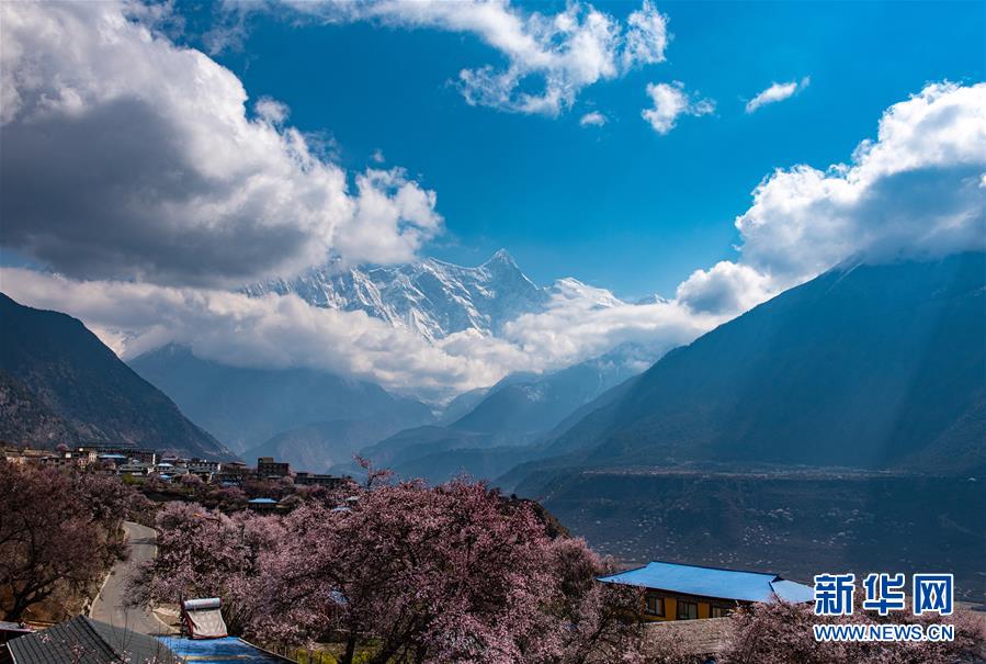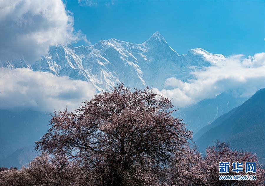 南迦巴瓦峰下盛开的桃花(4月1日摄)。新华社记者黄豁摄