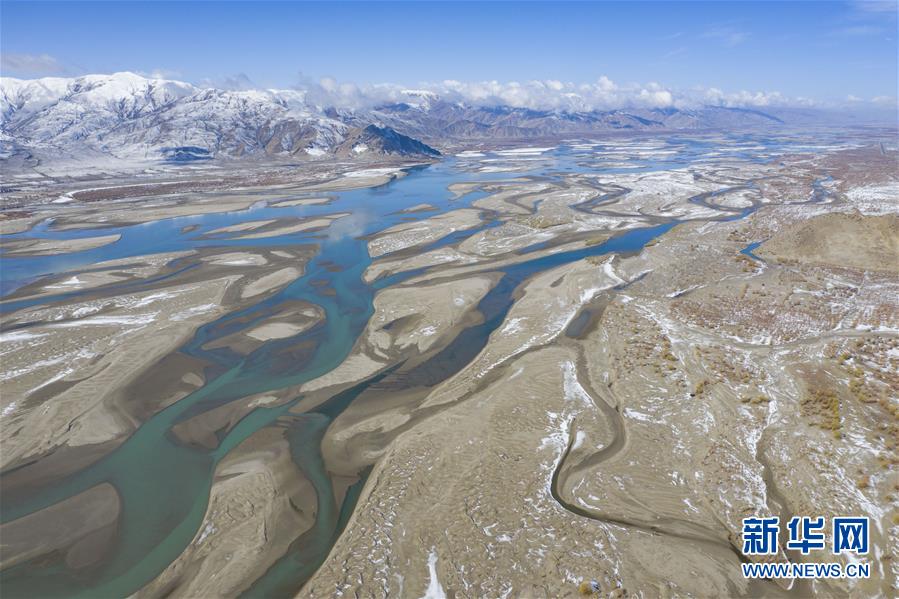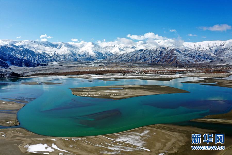 这是3月24日拍摄的雅鲁藏布江雪景(无人机照片)。当日,西藏拉萨及周边地区迎来降雪,雅鲁藏布江两岸银装素裹,分外美丽。新华社记者詹彦摄