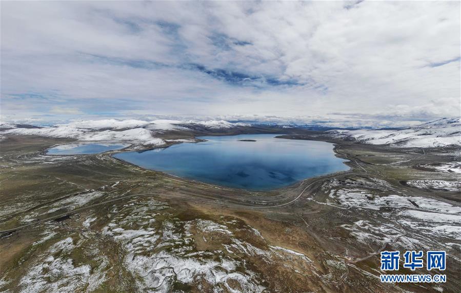 9月24日无人机拍摄的拿日雍错。拿日雍错位于西藏山南市错那县北部,海拔4900米,像蓝宝石般镶嵌在雪山草原之间。新华社记者晋美多吉摄