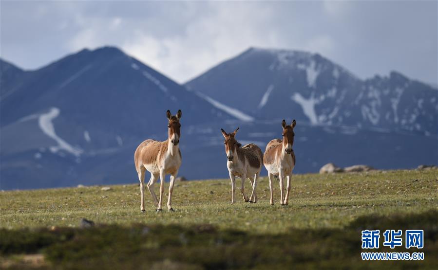 西藏札达县香孜乡热布加林牧场上的藏野驴(7月29日摄)。新华社记者晋美多吉摄