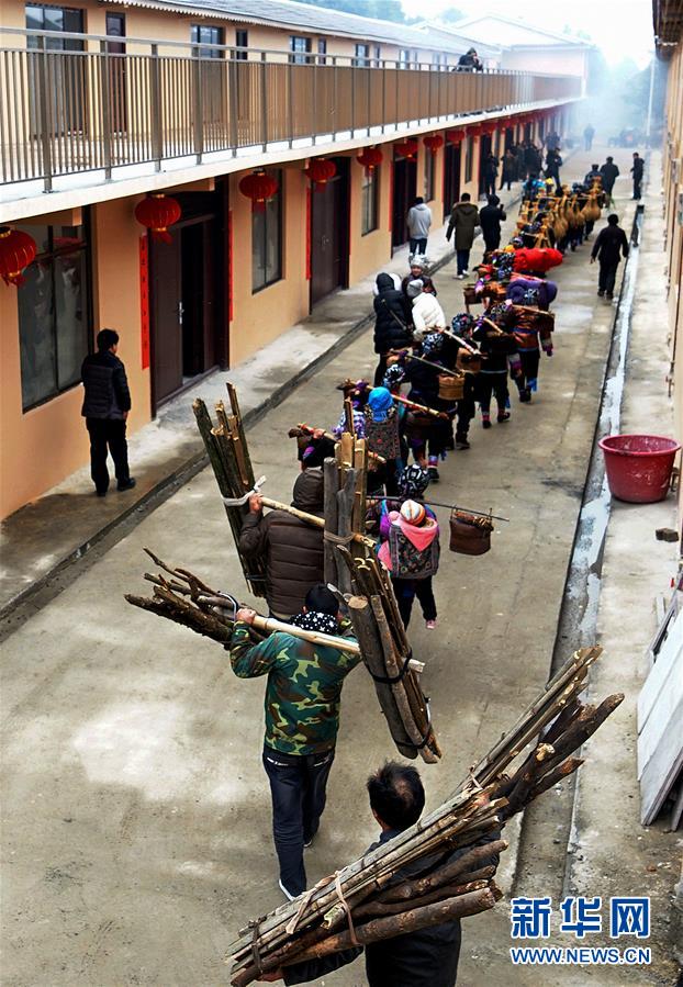 广西融水苗族自治县四荣乡荣地村的侗族村民在乔迁新居(2018年1月26日摄)。新华社记者张爱林摄