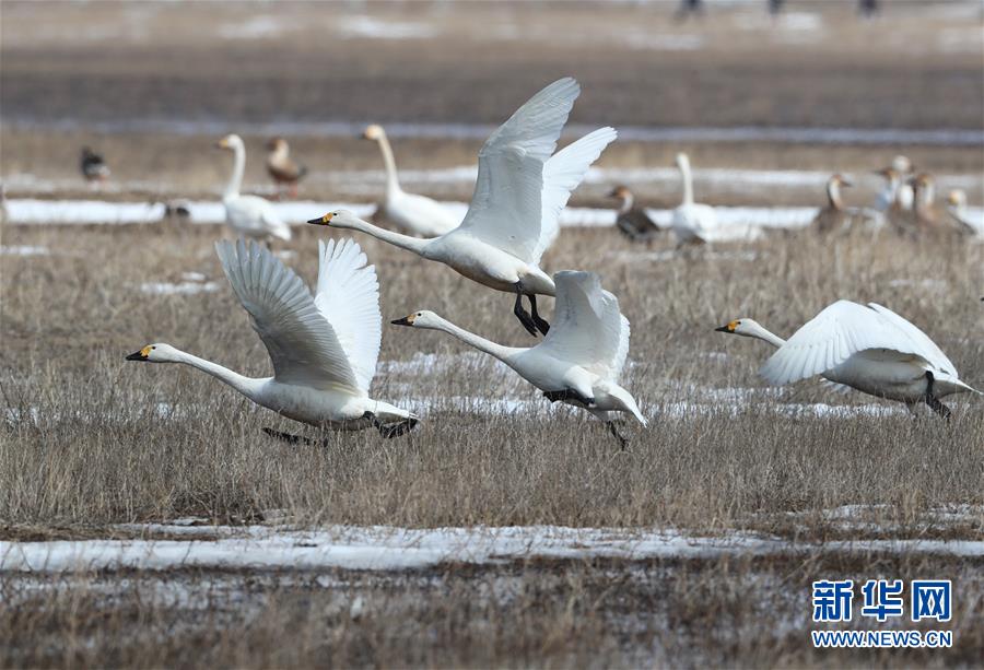 这是4月1日在张北县黄盖淖国家湿地公园拍摄的候鸟。近日,成群的候鸟飞临坝上地区的河北省张北县黄盖淖国家湿地公园。近年来,张北县不断加大生态建设力度,黄盖淖国家湿地公园已成为多种候鸟迁徙的中转站和栖息地。 新华社记者杨世尧摄