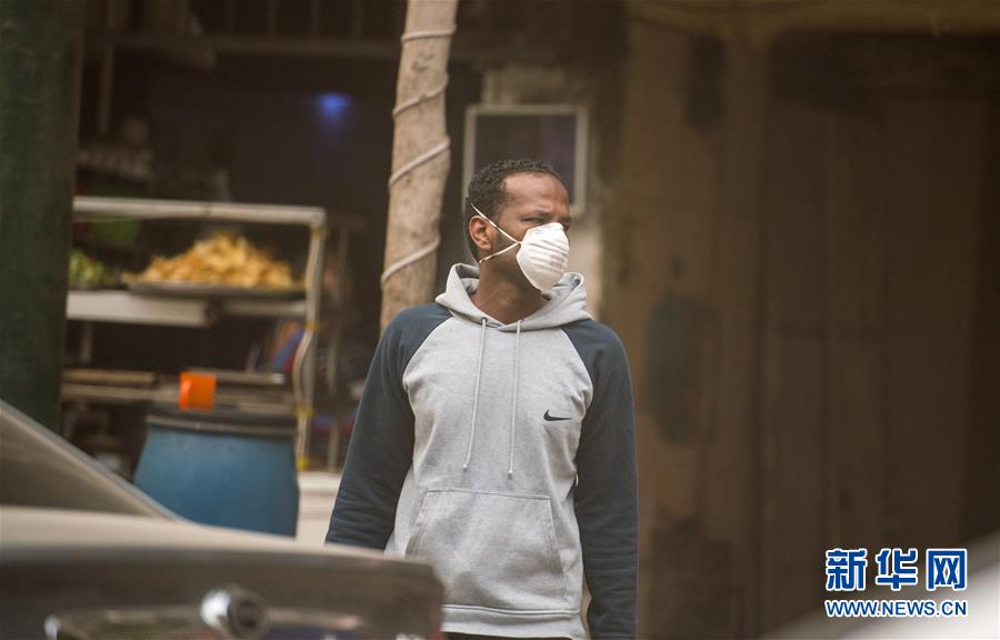 这是4月5日在埃及首都开罗拍摄的戴口罩的行人。