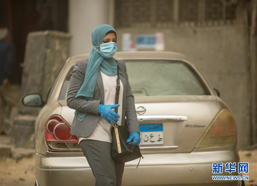 这是4月5日在埃及首都开罗拍摄的戴口罩的行人。新华社记者邬惠我摄