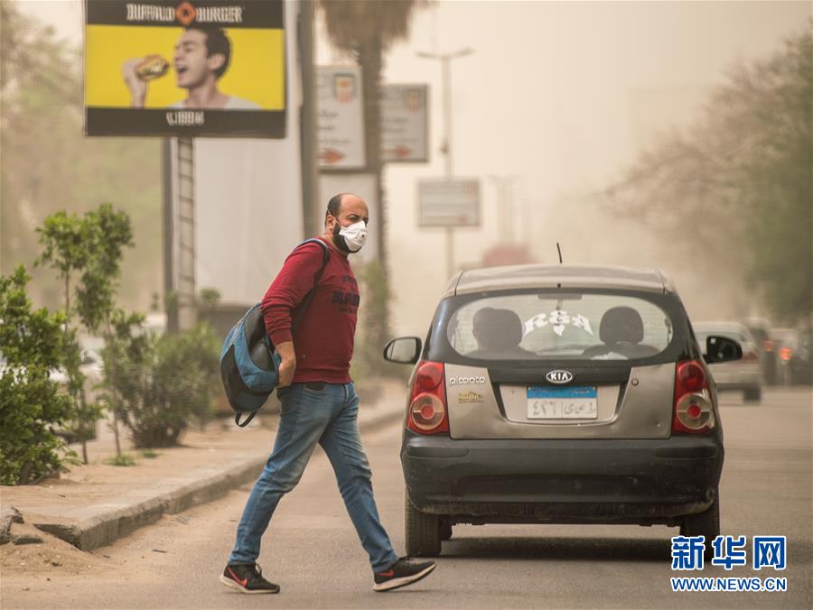 这是4月5日在埃及首都开罗拍摄的戴口罩的行人。新华社记者邬惠我摄