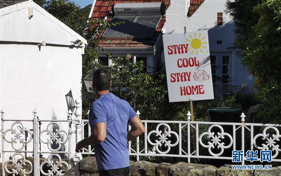 这是4月4日在澳大利亚悉尼费尔莱特社区拍摄的鼓励人们乐观抗疫的标语牌。新华社记者白雪飞摄