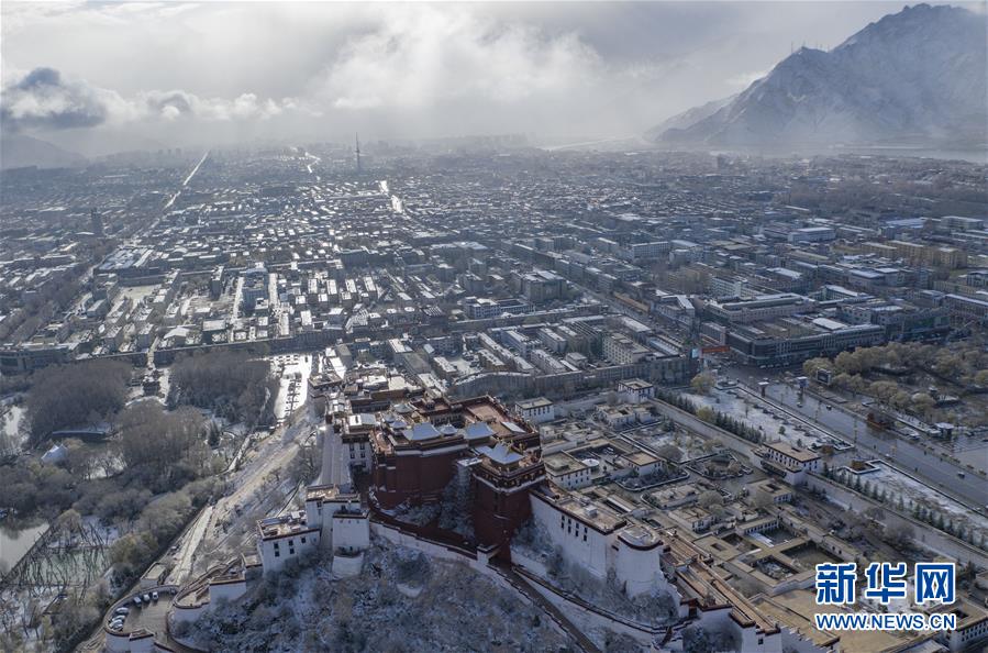 当日,西藏拉萨迎来降雪,高原古城银装素裹,美如画卷。新华社记者普布扎西摄