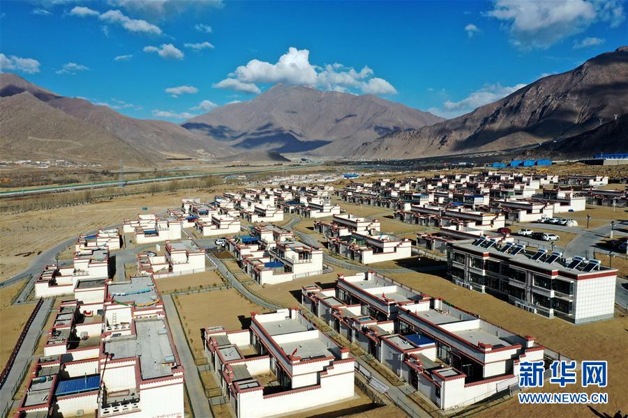 拉萨市堆龙德庆区古荣乡荣玛高海拔生态搬迁点一角(4月2日摄,无人机照片)。新华社记者 詹彦 摄