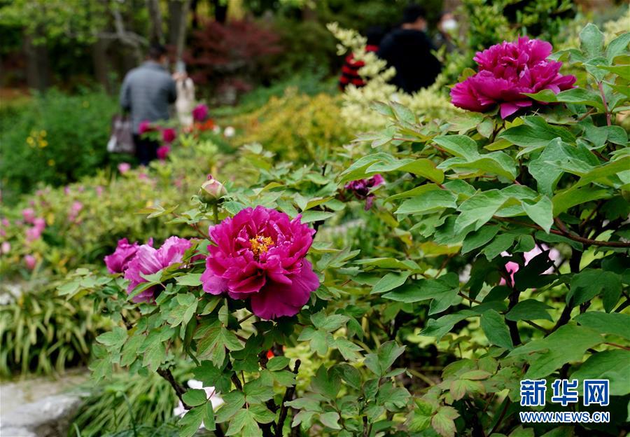 4月6日在位于上海松江的江南古典园林——醉白池拍摄的牡丹花。 新华社记者 刘颖 摄