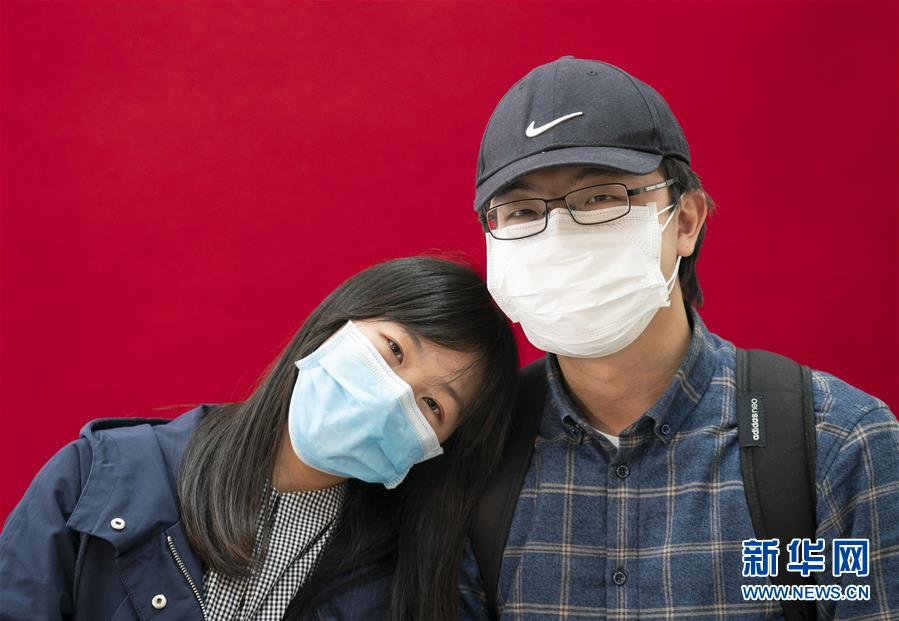 4月7日,在武汉市江岸区的一家照相馆,新人卢先生和丁女士在婚姻登记前拍摄照片。 新华社记者才扬摄