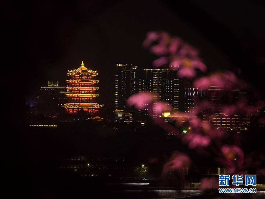 这是4月7日晚在武汉龟山拍摄的黄鹤楼夜景。新华社记者肖艺九摄