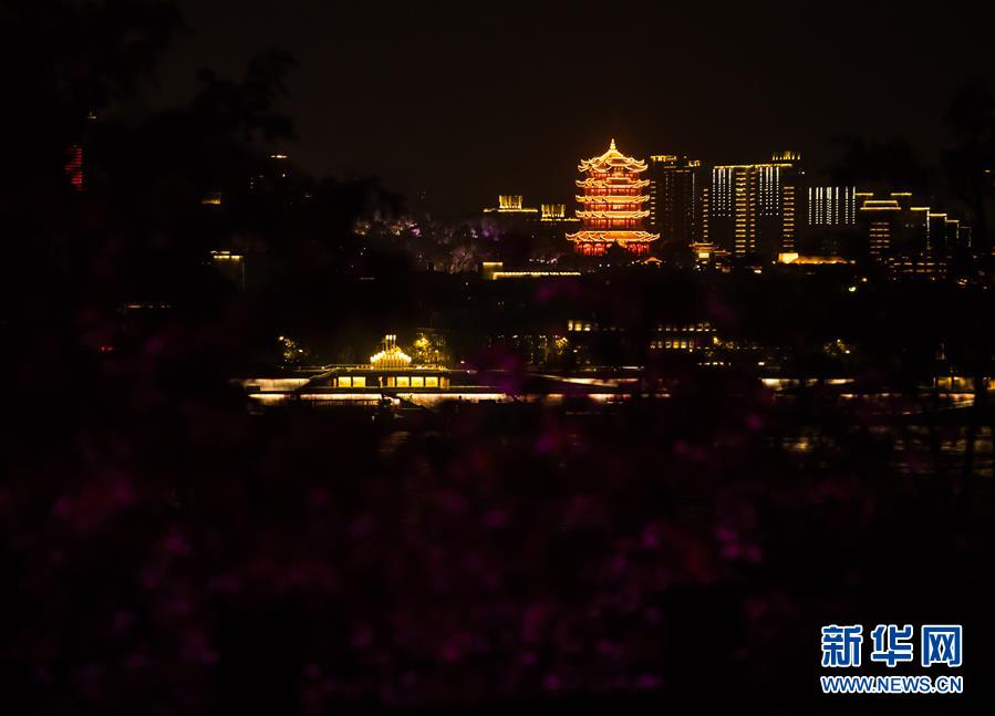这是4月7日晚在武汉龟山拍摄的黄鹤楼夜景。新华社记者肖艺九摄