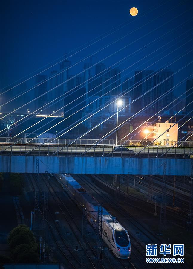 4月8日,一列动车从武汉动车段驶出,开往汉口站迎接旅客。 新华社记者 肖艺九 摄
