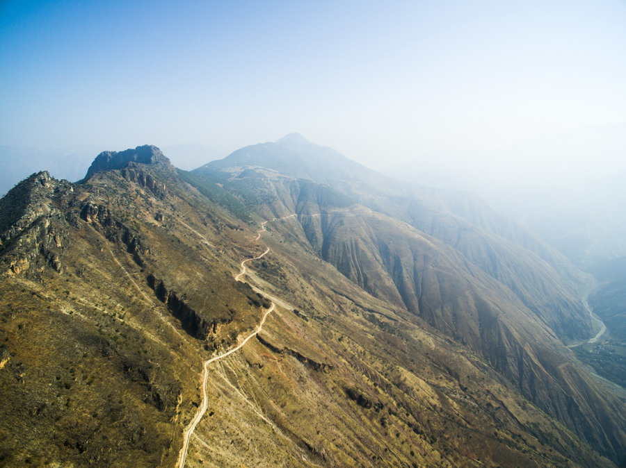 2020年4月5日,云南,昆明市禄劝县雪山乡基多村委会到基多村民小组的公。公路在原地盘旋海拔下降1200米。