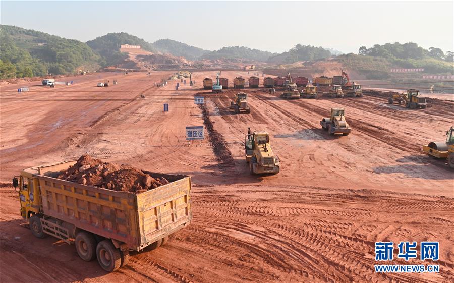 普洱车站施工现场正在进行路基土方填筑施工(4月12日摄)。新华社记者秦晴摄