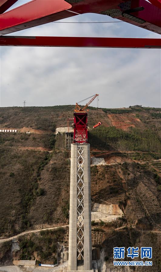 中老铁路元江特大桥“迈”过第一高墩