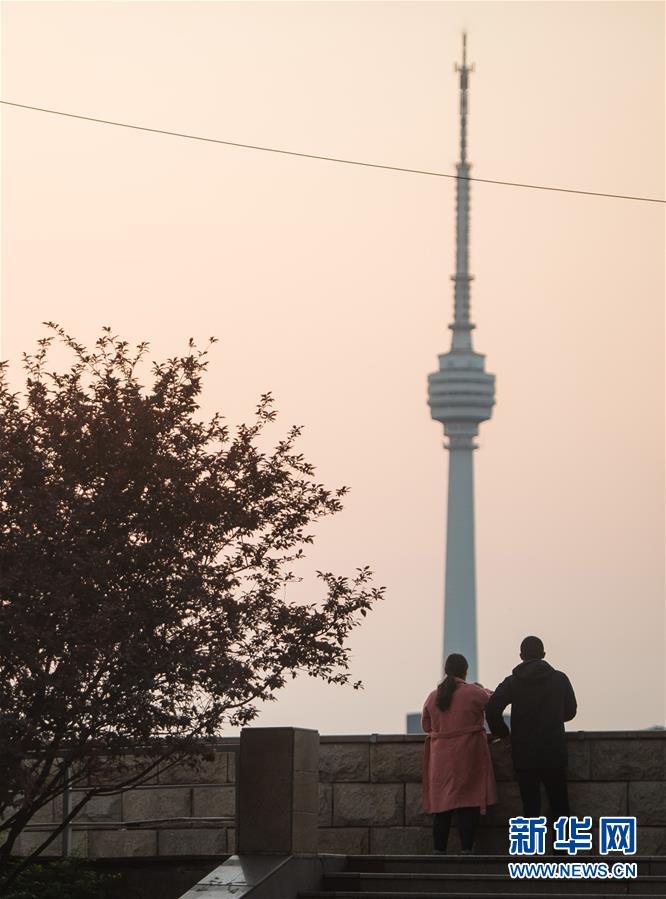 4月8日,市民在武汉中华路码头欣赏风景。新华社记者肖艺九摄
