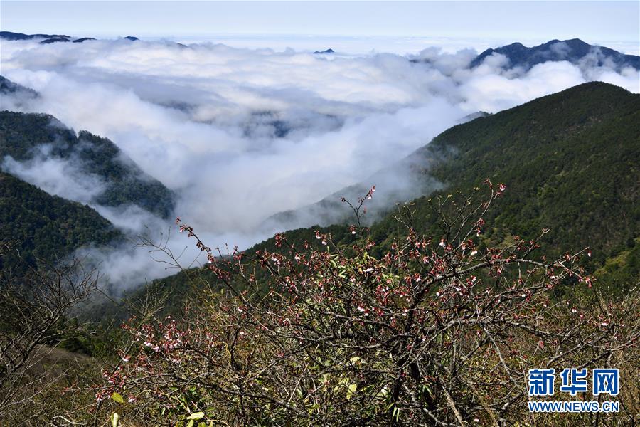 站在武夷山国家公园最高峰黄岗山远望云雾缭绕的群峰(4月1日摄)。新华社记者姜克红摄