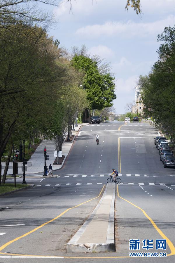 4月8日,在美国首都华盛顿,市民在空旷的街道上骑行。美国约翰斯·霍普金斯大学8日发布的新冠疫情最新统计数据显示,美国确诊病例超过40万例。美国目前是全球确诊病例最多的国家。数据显示,截至美国东部时间8日12时30分(北京时间9日0时30分),美国新冠确诊病例升至401166例,死亡12936例。新华社记者刘杰摄