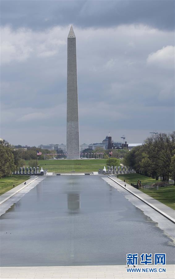 4月1日,在美国首都华盛顿,一名男子在华盛顿纪念碑附近跑步。新华社记者刘杰摄