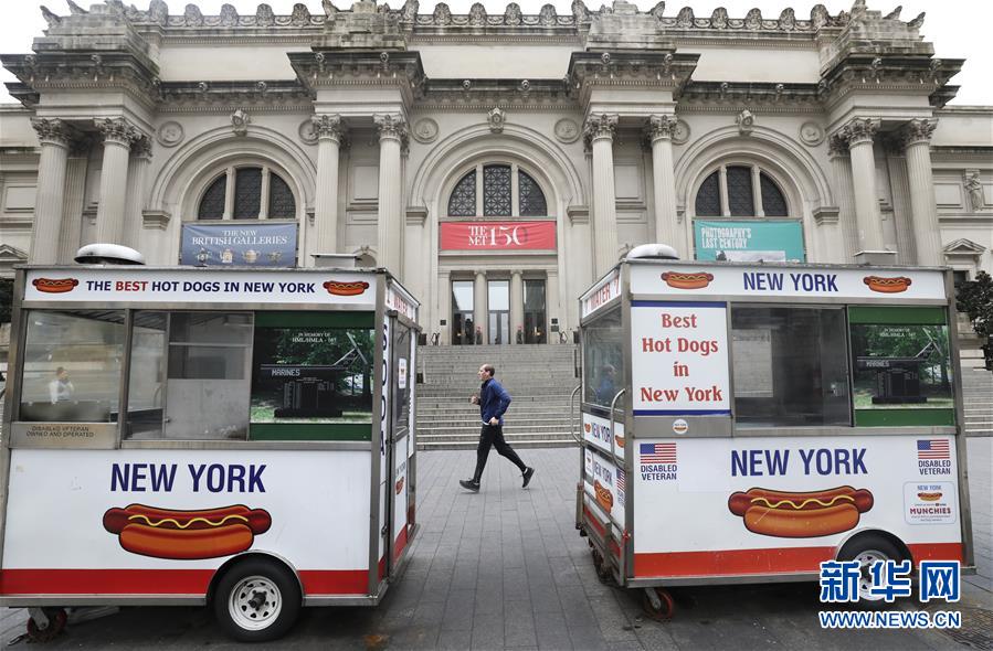3月19日,在美国纽约曼哈顿,一名男子跑步经过因新冠疫情而暂时闭馆的大都会博物馆。新华社记者王迎摄