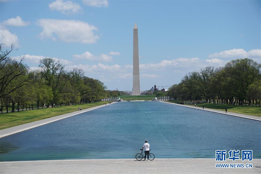 4月8日,在美国首都华盛顿,华盛顿纪念碑周围游人稀少。新华社记者刘杰摄
