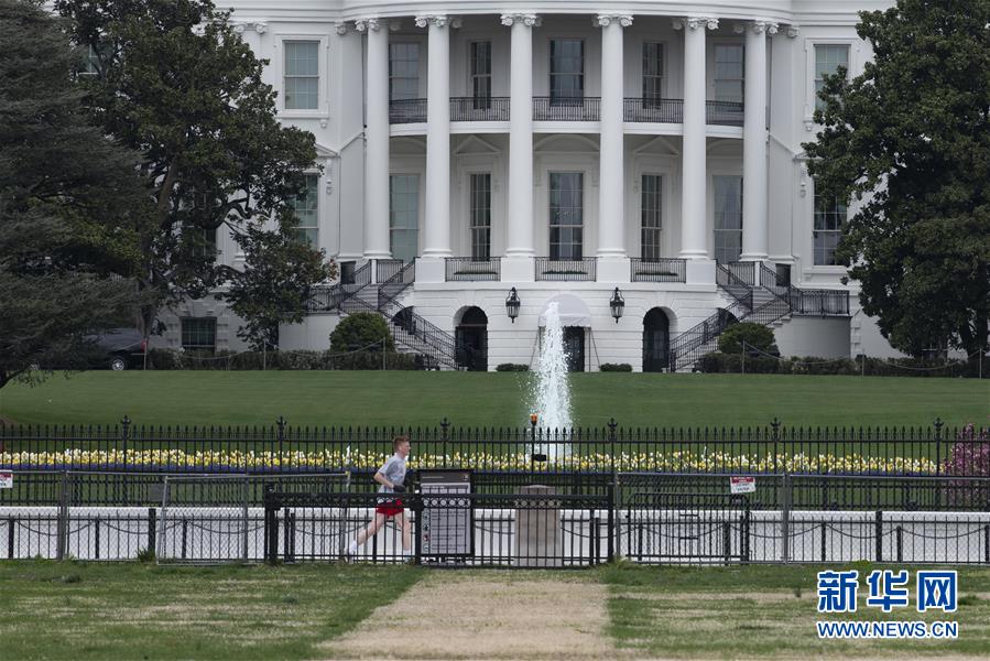 4月1日,在美国首都华盛顿,一名男子在白宫附近跑步。新华社记者刘杰摄