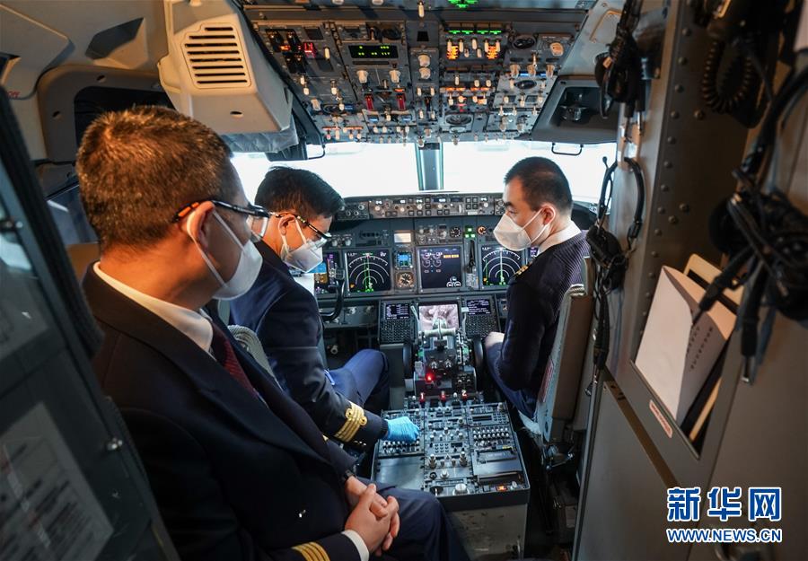 4月8日,东方航空MU2527飞行员在做飞行准备。新华社记者程敏摄