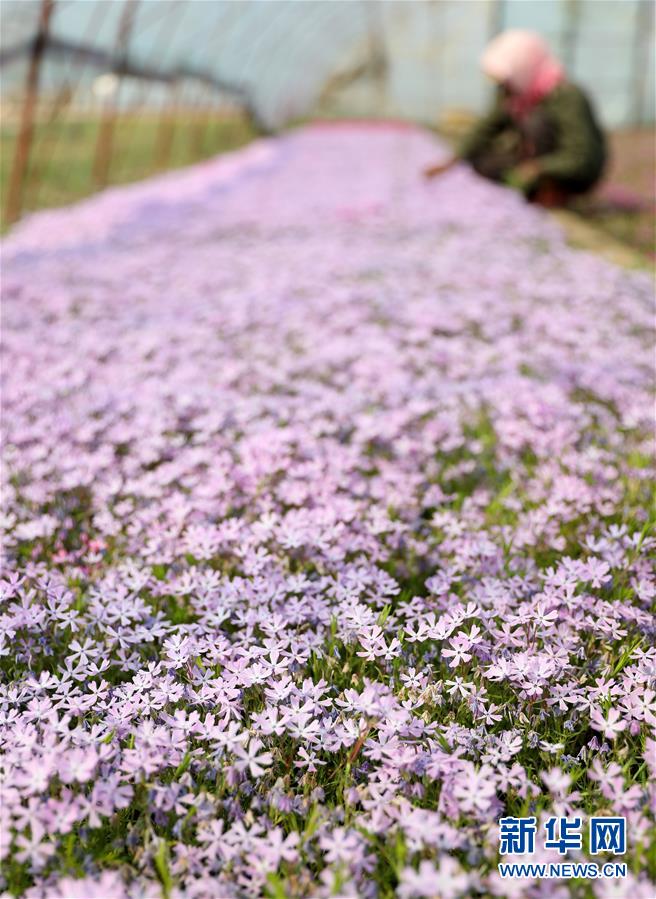 4月13日,花农在八角台街道雅化村一块花圃内分拣培育好的花苗。新华社记者姚剑锋摄