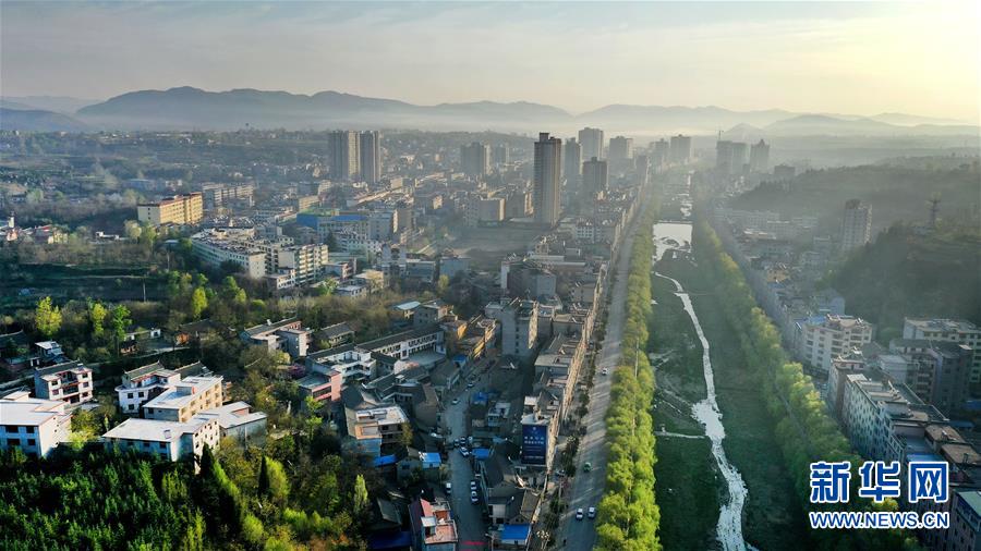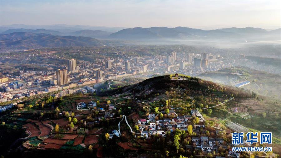 4月13日清晨时分拍摄的洛南县城(无人机照片)。新华社记者陶明摄