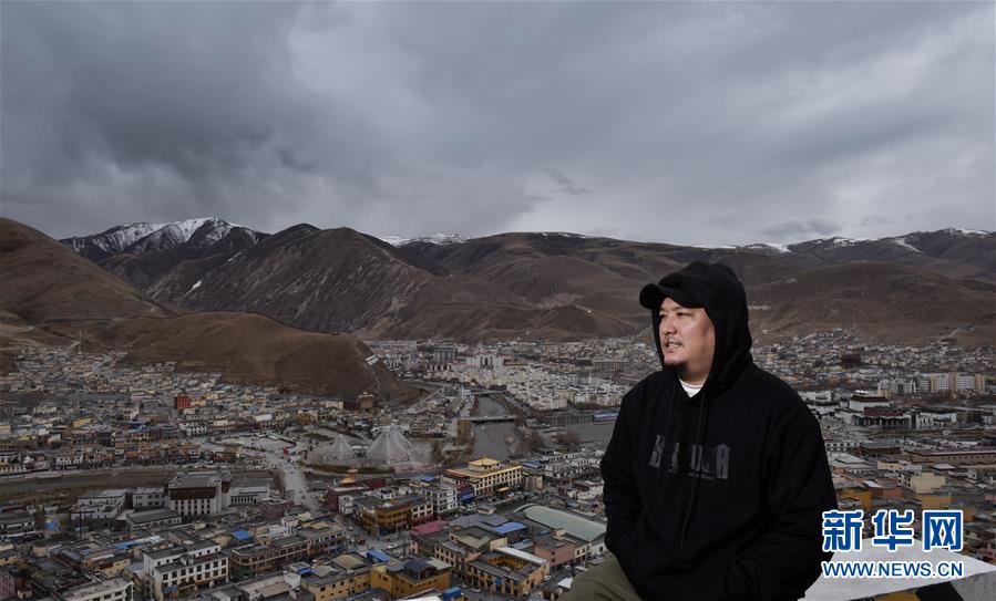 4月10日,才仁俄赛在结古寺远眺新玉树全景。