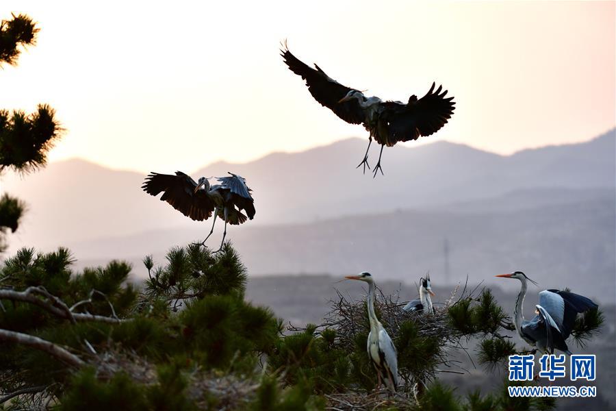 山西吕梁:苍鹭舞林间