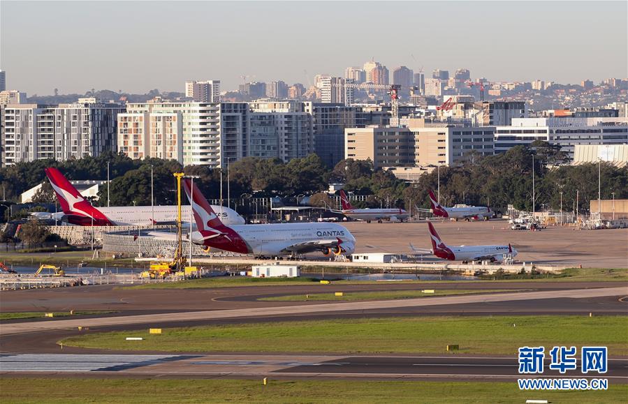 4月15日,在澳大利亚悉尼机场,多架澳洲航空客机停泊在维修区。新华社记者白雪飞摄