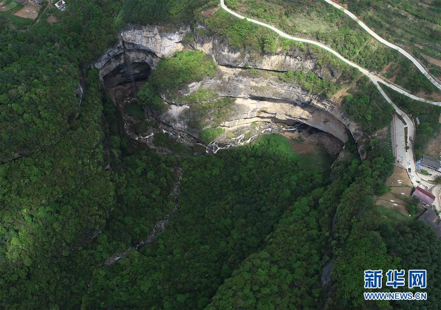 这是在陕西省汉中市宁强县火石子村用无人机拍摄的地洞河天坑。新华社张博文摄