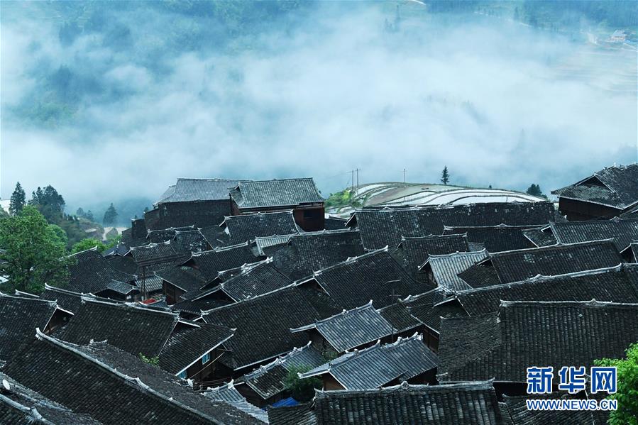 贵州省从江县加榜乡党扭村苗寨景观(4月17日摄)。贵州省从江县把人居环境整治作为脱贫攻坚工作的一项重要举措来抓,对乡村规划范围内长期无人居住的危房、废弃禾仓、棚圈、柴草房和房前屋后的残垣断壁等进行清理整治,进行复垦复绿,同时开展农户卫生和村寨环境整治,做到乡村环境干净、卫生、整洁,扮靓美丽乡村。新华社记者杨文斌摄