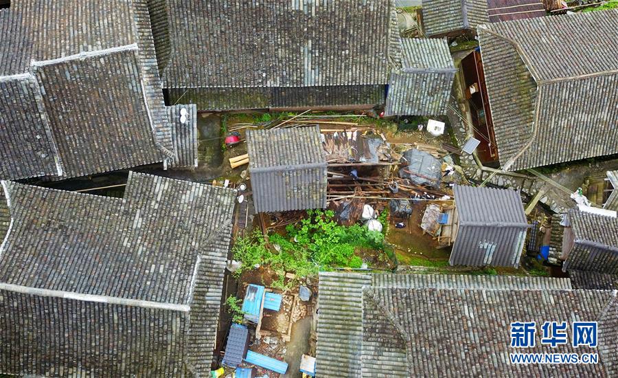 4月19日,贵州省从江县加榜乡加车村脱贫攻坚指挥所的驻村干部帮助农户拆除废弃圈舍(无人机照片)。贵州省从江县把人居环境整治作为脱贫攻坚工作的一项重要举措来抓,对乡村规划范围内长期无人居住的危房、废弃禾仓、棚圈、柴草房和房前屋后的残垣断壁等进行清理整治,进行复垦复绿,同时开展农户卫生和村寨环境整治,做到乡村环境干净、卫生、整洁,扮靓美丽乡村。新华社记者杨文斌摄