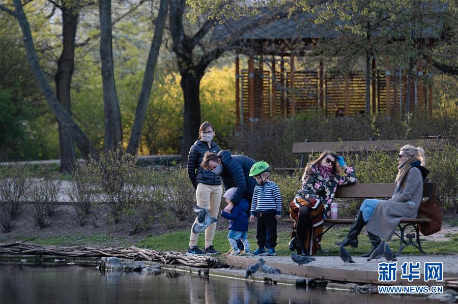 4月20日,人们在波兰华沙的克拉辛斯基公园里游玩。新华社记者周楠摄