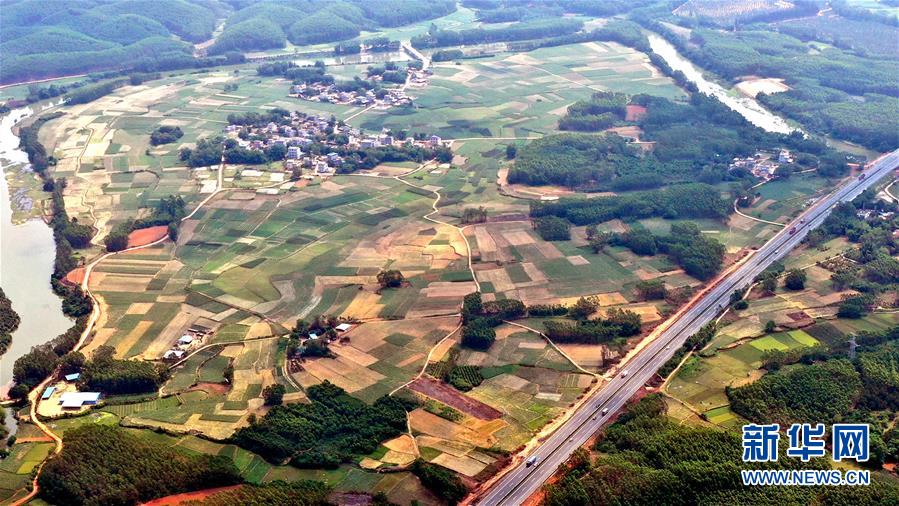 鸟瞰广西合浦春色:村庄星罗棋布、色彩斑斓