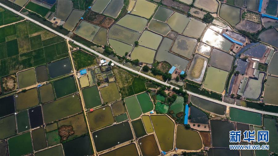 这是4月21日拍摄的合浦县境内的春日风光(无人机照片)。暮春时节,从空中俯瞰广西北海市合浦县大地,河流、稻田、虾塘、道路、村庄星罗棋布、色彩斑斓,美不胜收。新华社记者张爱林摄