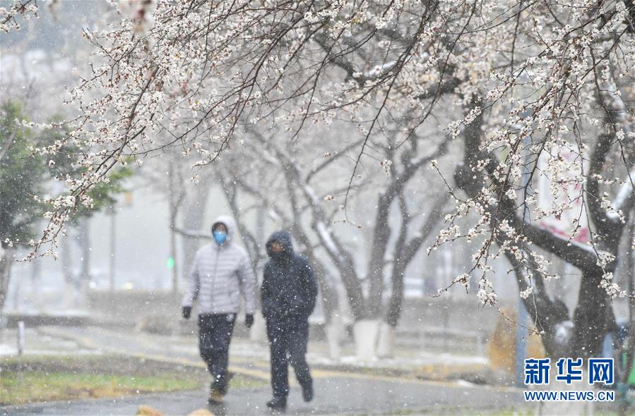 4月21日,长春市民冒雪出行。当日,吉林省多地迎来降雪天气。新华社记者许畅摄