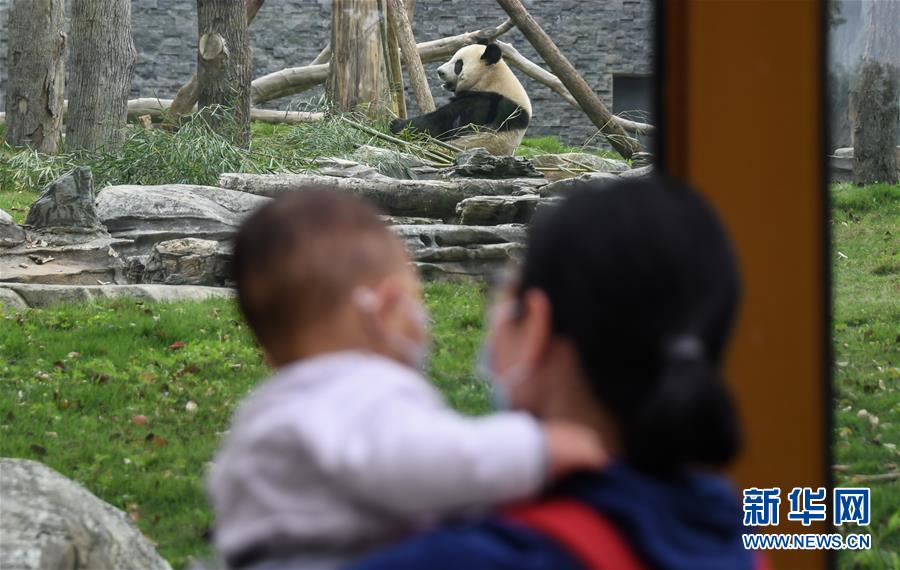 4月22日,大熊猫迎来参观的游客。当日,在严格落实疫情防控措施的前提下,武汉动物园有序恢复开放。新华社记者程敏摄