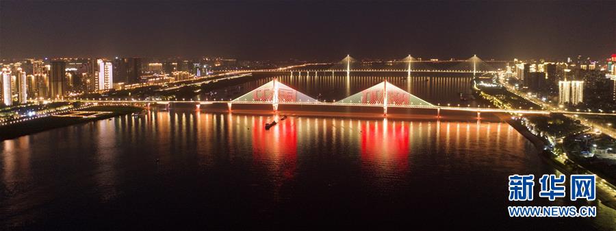 4月14日拍摄的武汉长江二桥附近夜景。新华社记者才扬摄