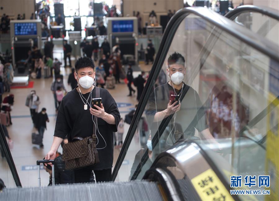 4月8日,乘客在汉口火车站进站乘车。新华社记者肖艺九摄
